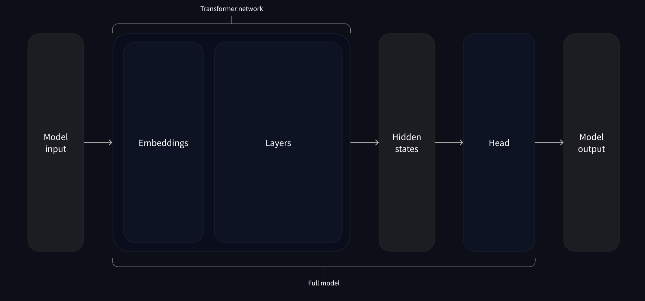 - Body (тело модели), которое возвращает только признаки (скрытые состояния) — понимание введенного текста в контексте.